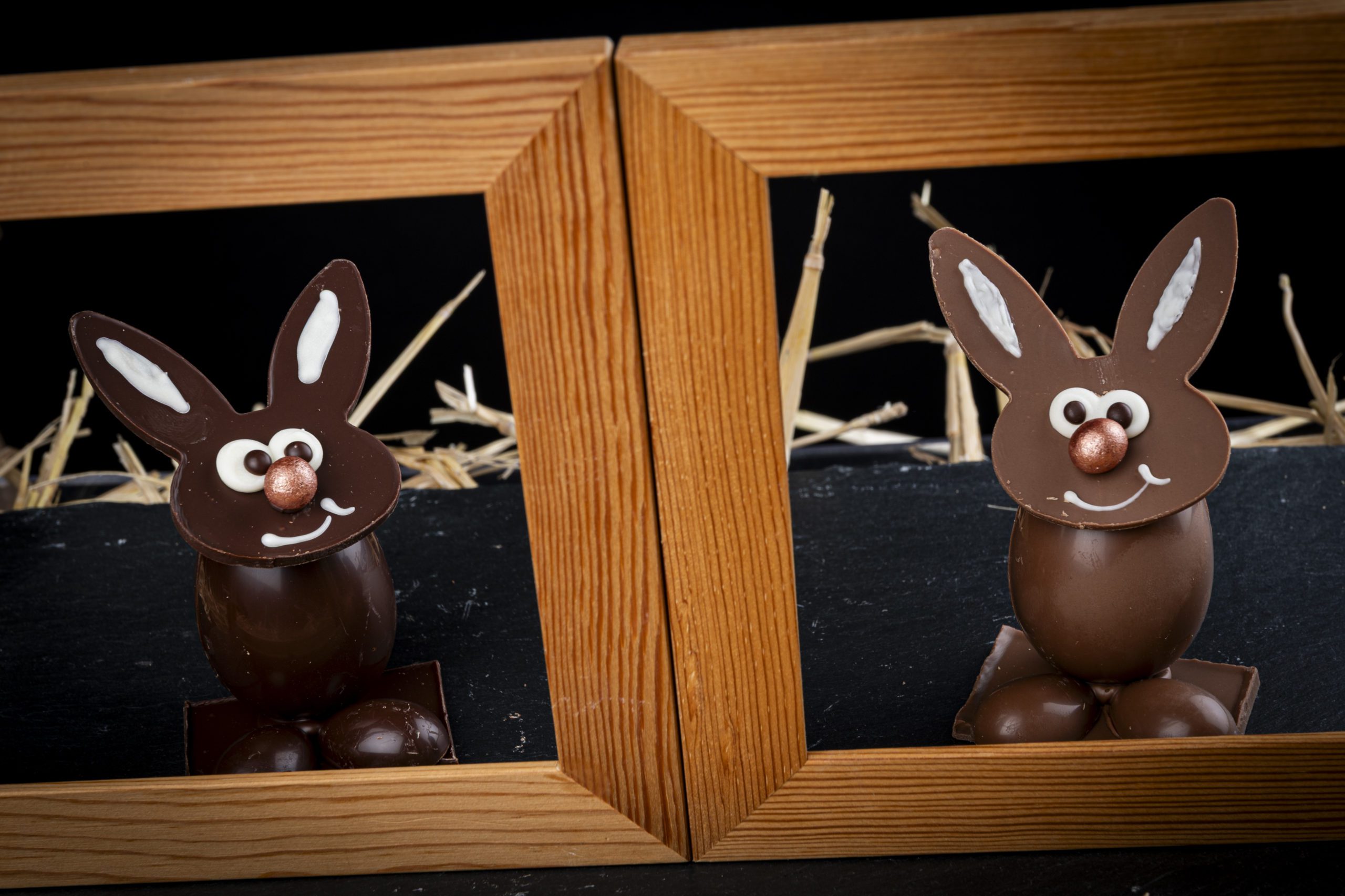 Que serait Pâques sans lapins en chocolat ? Retrouvez les photos de mes pièces en chocolat, toutes faites à la main.